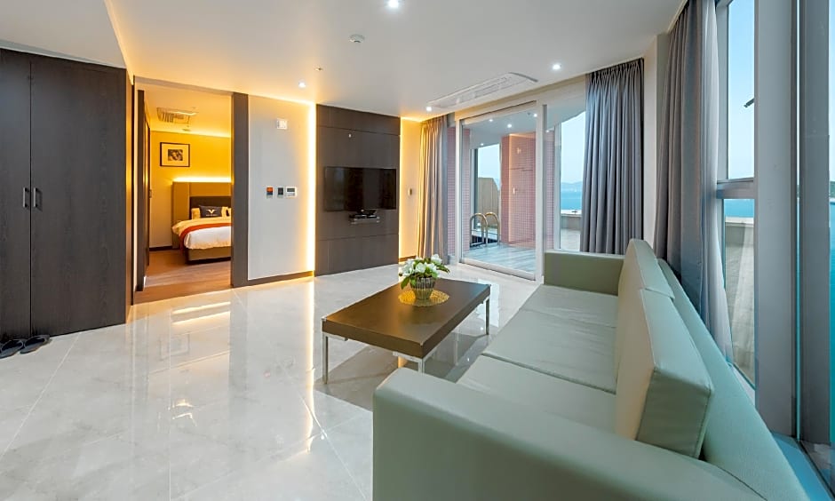 Guests will have a special experience as this suite provides a private pool. This spacious suite is consisted of of 1 living room, 1 separate bedroom and 1 bathroom with a shower and bathrobes. Featuring a terrace with sea views, this suite also offers air conditioning and a flat-screen TV with cable channels. The unit offers 2 beds.
